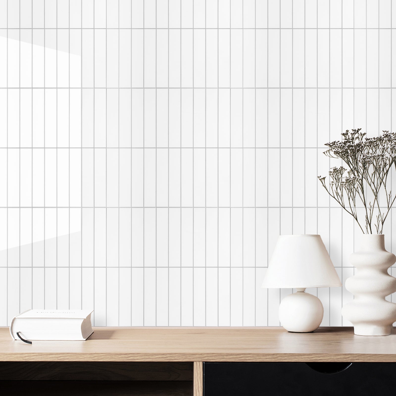The Kit Kat Stick on Composite Tile in a Gloss White is the perfect solution to upgrade the look of your home without the hassle of a traditional tile installation! These peel and stick tiles are incredibly easy to install - simply remove the backing and stick them onto any smooth surface. No grout, no mess, no fuss!