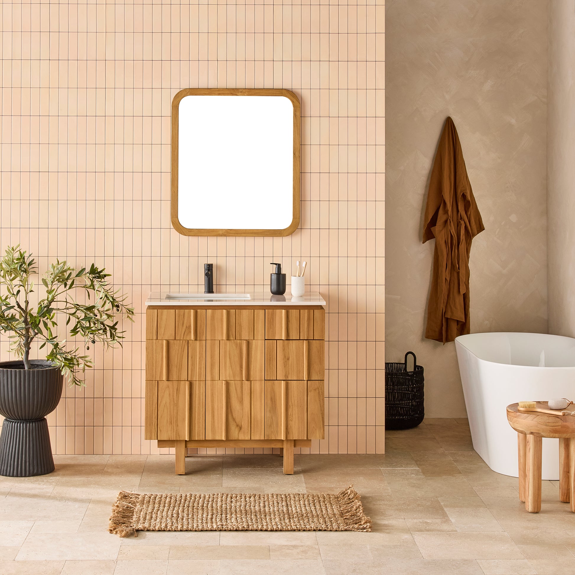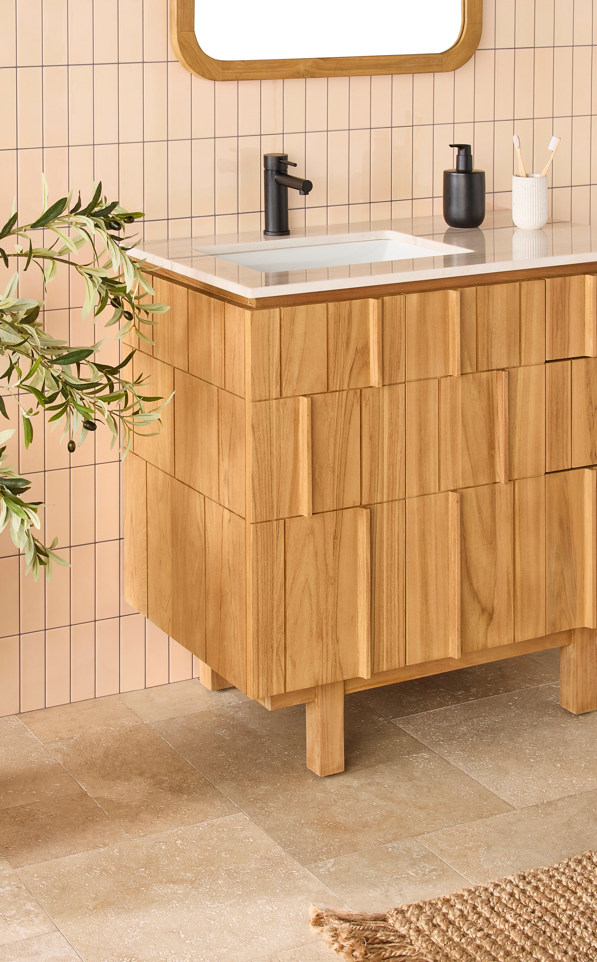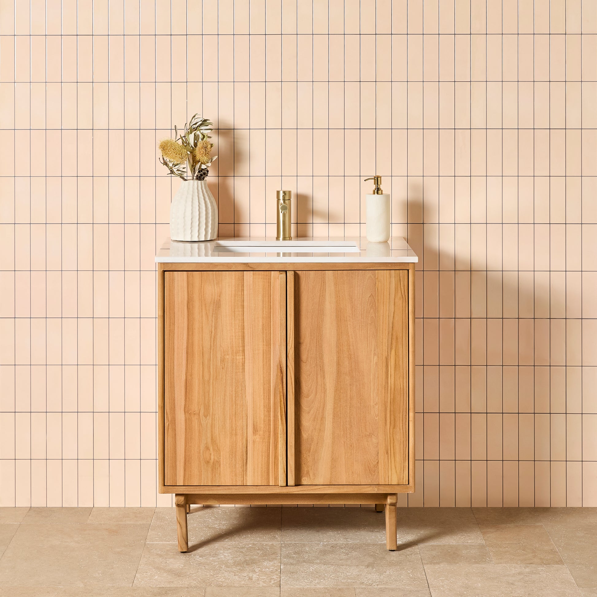 Vinyl and Composite tiles are water-resistant and ideal for splashbacks, laundries and bathroom features. For areas with direct water exposure (e.g. shower recesses), add extra waterproofing by sealing all edges and corners with silicone, and filling joins or bevels with silicone or an epoxy grout.