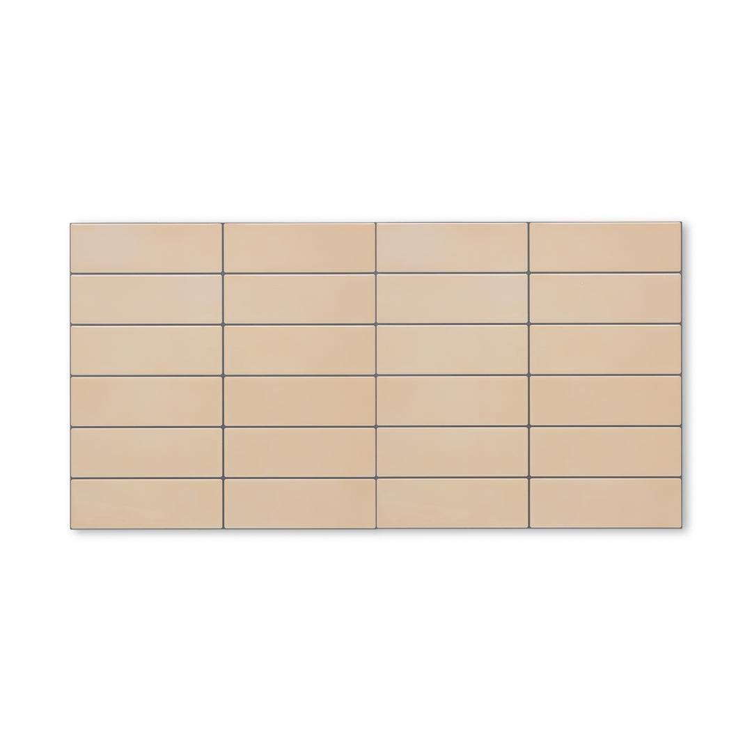 Larger shaped tiles make up these Kit Kat style tiles in a stunning custom-designed colour we are calling "Butter Terracotta". This creamy colour is paired with dark grey grout to highlight clean edges and contrast the bold yellow-toned tile.