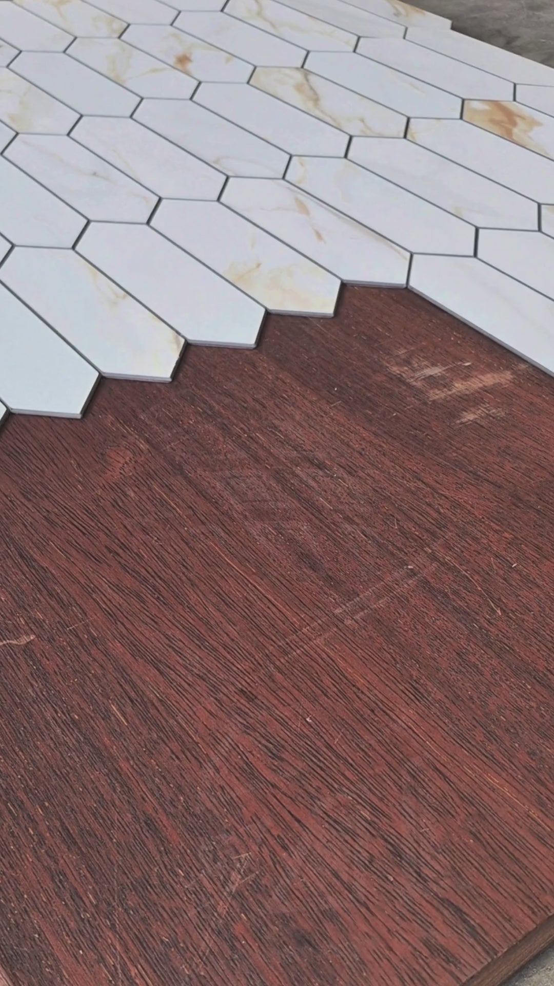 Transform your space with the Long Hexagon Stick on Composite Tile in Calacatta marble. The stunning yellow veins paired with a white tile create a luxurious and eye-catching look that is sure to impress. With its easy peel-and-stick installation process, you can have a designer tile look in no time and without breaking the bank. Made from composite material, these tiles offer both affordability and style, making them a great choice for those who want to upgrade their home's look without sacrificing their budget. Get the designer tile look you've always wanted with the Long Hexagon Stick on Composite Tile in Calacatta marble.