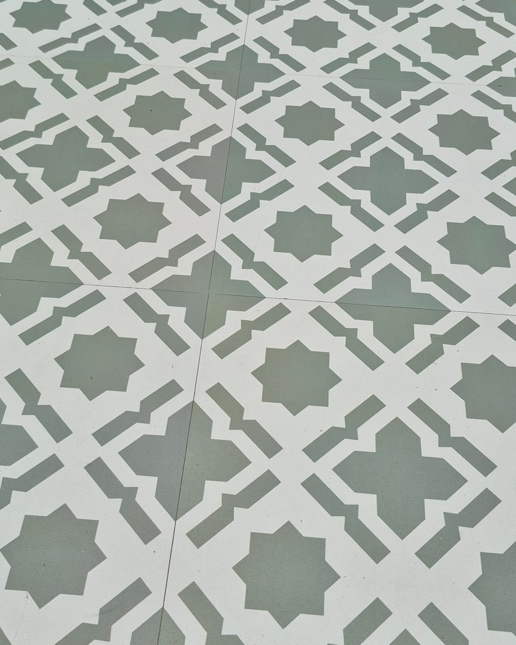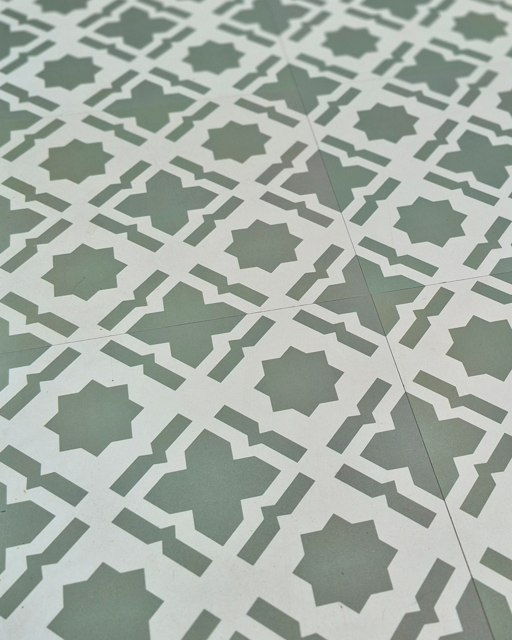 Our Sage Star Vinyl Floor Tiles feature an intricate geometric star pattern in a muted green against a crisp white background, this tile brings a modern twist to traditional design. The lightly textured surface offers both style and grip, making it ideal for kitchens, hallways, or feature areas. With its easy peel-and-stick backing, this tile is perfect for renters, DIY renovators, and anyone looking for a quick and impactful transformation.